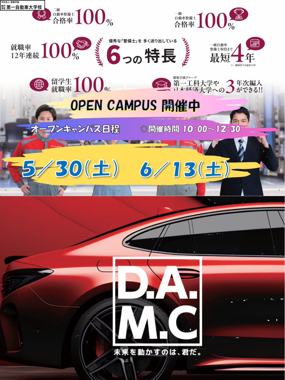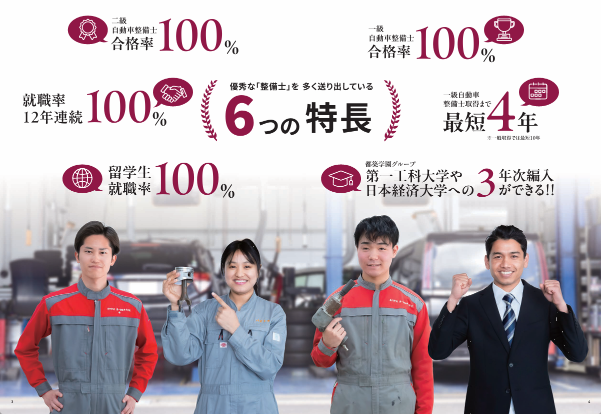 ハイレベルな技術を生かす実践力と応用力を身に着けた現場の即戦力となる整備士を育成します。校内学習で基礎を学び、実習に重きを置いたカリキュラム(サイクル型)が特徴です。